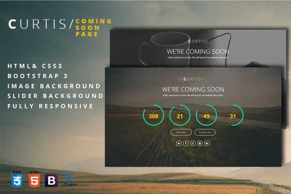 Curtis is a coming soon page built in Bootstrap 3. It is very easy to customize. You can change colors, images and countdown timer easily.