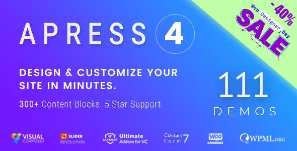 Apress Theme is the result of more than 20 months of tireless work by our team of designers and developers . Its equipped with the latest technologies and designed with user in mind to ensure endless freedom to create and customize your site like a pro and without any coding.