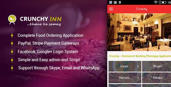 Crunchy Food Order Mobile App is an excellent full application for your restaurant business. Complete Application with full functionality Build on Phonegap and Ionic PayPal and Stripe Payment Gateways integrated Facebook and Google+ Login Integrated