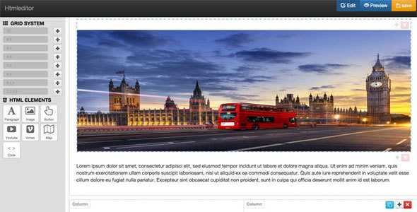 HtmlEditor is a drag & drop web page builder in only 286kb (based on boostrap) script in javascript Jquery and php built for developer . You can simply integrate this script in your web project and create custom html template with drag & drop.