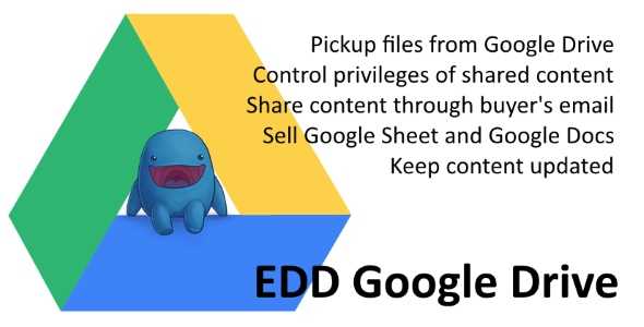 EDD Google Drive allows you to easily connect Word Press and Easy Digital Downloads with a Google Drive. You can choose Google Drive content directly into Wordpress by using the Google Picker and have them as downloadable files on your e-commerce website.