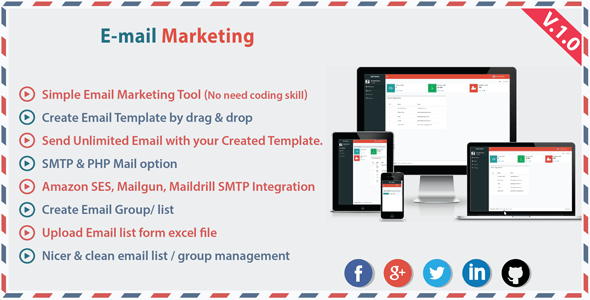 Simple Email Marketing Tool (No need coding skill) Run your own business like mailchimp Get paid form from your customer by selling subscriptions Payment gateway stripe.com, PayPal integrated Create Email Template with rich editor