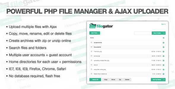 Advanced Multi-User PHP File Manager & AJAX Uploader Upload, edit, manage, zip and share files and folders. Multiple user accounts with private folders and permissions.