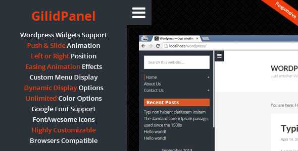 GilidPanel lets you easily build slide out panel for any kinds of content using wordpress sidebar widgets. This plugin comes with “slide” and “push” animation effect with jquery easing options and can be assigned either on left or right side. This also comes with responsive scrollable contents that will allow you the add as many contents as you want!
