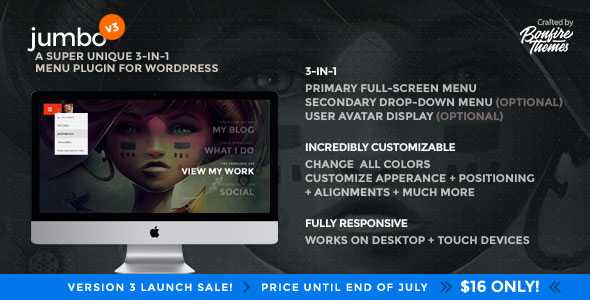 - Item name : Jumbo v3.3 - A 3-in-1 full-screen menu for WordPress