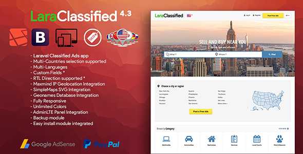 - Item name : LaraClassified v4.3 - Geo Classified Ads CMS