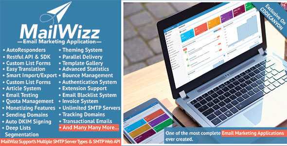 MailWizz EMA is a simple to use, efficient and full-featured email marketing application with an impressive features set. With MailWizz not only that you will be able to properly handle email marketing for your own purposes but you can also become an Email Service Provider for your customers, since MailWizz integrates easily with payment gateways like Paypal and it offers all the needed tools to create pricing plans, promotional codes and to manage orders and transactions created by your customers.