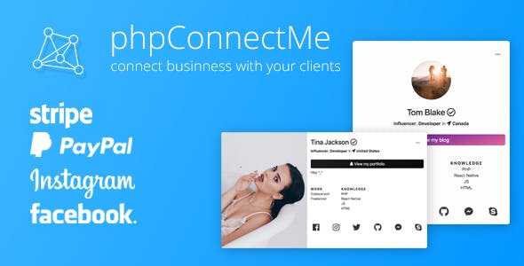 phpConnectMe is an online social profiles creator that gives you the extraordinary ability to have your users create beautiful and custom pages for themselves along with a beautiful and complex admin panel that you can manage the whole website with. It also comes with a Paypal and Stripe payment gateway so that your users can purchase Pro Accounts from your website.