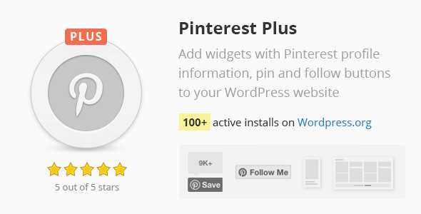 Pinterest plugin is a useful social solution which adds Pinterest Pin It button, Follow button, and widgets (Pin, Board, Profile) to your Wordpress website. Plugin has simple settings and includes shortcodes.