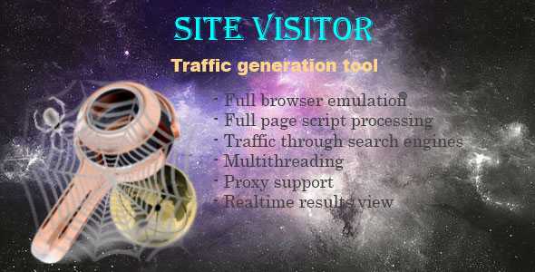 Site Visitor tool allows you to generate traffic on your site(s). The tool provide full browser emulation so all scripts (including analytics such as google analysts) will execute on pages. You can configure input flow and see all processing in real-time. Search engine traffic generation supported (currently Google and Bing). Multithreading, proxies, waiting intervals configuration supported.