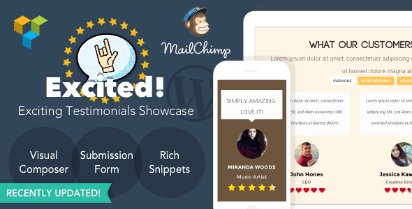 Testimonials Showcase — Excited! — is a premium multi-use WordPress plugin with main purpose of building awesome testimonials showcase on your website or blog. The plugin is packed with flexible testimonial builder, rating submission form, various design layouts and absolute freedom on styling. It’s possible to craft almost any design you can imagine. And use cases are not limited just for testimonials showcase. Get excited!