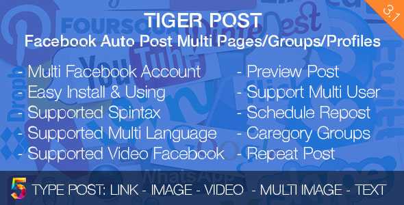 - Item name : Tiger Post v3.1 - Facebook Auto Post Multi Pages/Groups/Profiles (RETAIL)