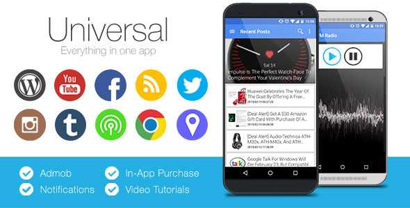 Universal is a solid template for everyone to create apps. You can use content from all around the web and combine it in one, customizable, application.