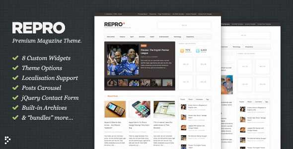 Repro is the Premium WordPress News / Magazine theme. Jam packed with custom options, custom widgets and a dollop of good looks. Repro is suitable for content producers at all levels, personal bloggers, newspapers, online magazines, community blogs you get the idea. Repro looks great out of the box but also acts as the perfect black canvas for those looking to customise and develop their own content-focused site.