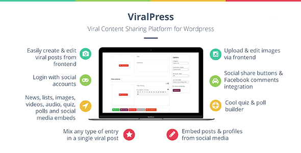 ViralPress is a wordpress plugin to build a viral content sharing platform. ViralPress supports news, lists, images, audio, videos, social media embeds, polls and quizzes. With ViralPress, anyone can easily create viral lists, quizzes and polls quickly and easily. ViralPress has its own author profiles, login, signup & password reset pages bypassing default wordpres pages that makes your site looks more dedicated & professional.