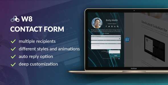 W8 Contact Form for WordPress is one of the most flexible Contact Form plugin with multiple recipients, unlimited forms, different styles, animations, auto reply option and huge variety of additional customization options. Provides embed and floating, sliding methods to attract the visitors