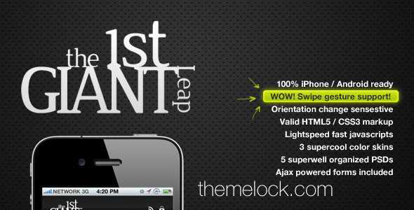 1stGiantLeap Mobile is a HTML5 /CSS3 template tuned to look perfect in mobile browsers. The markup is device orientation (landscape/portrait) sensitive, so when you change device orientation by rotating it 90 degrees CW or CCW this template will look nice.