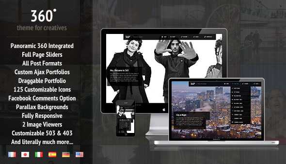 360° is really a one-of-kind theme that integrates a panoramic layout full of options and features that will rock your inner most theme buying desires. The goal for 360° was to offer big, bold imagery, but also preserve traditional blogging layouts, portfolios, and page templates. 360° is fully responsive, fully kick-ass theme that gives the user total control to create, to exhibit, to showcase photography and imagery ranging from the artist or photographer to the local business wanting to showcase their store, from the jeweler who wants to create bold impressions or just the small mom & pop restaurant who wants to offer a tour of their business. The options are nearly unlimited.