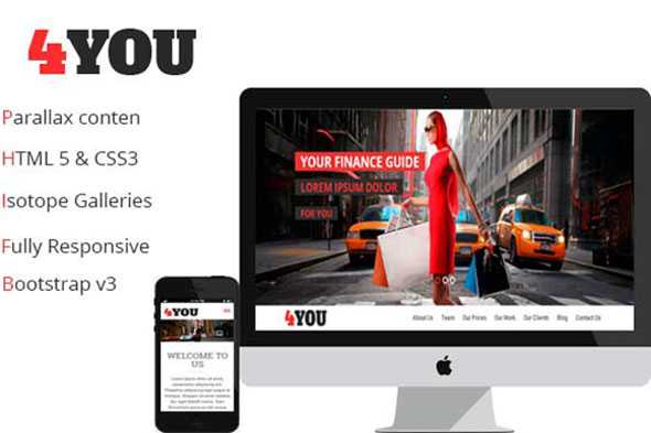 In search of a great website to showcase your upcoming event or great product? 4you just does that! Being built using bootstrap 3 it is like a robot transformer. You can change it however you want to suit your purpose. We included in it all the base things needed for such a case like pricing tables, isotope galleries, google maps, twitter feed, parallax blocks and more… Try it and you will come back for more!