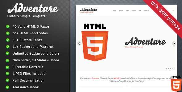 - Item name : Adventure - Clean & Simple HTML 5 Themeforest Template