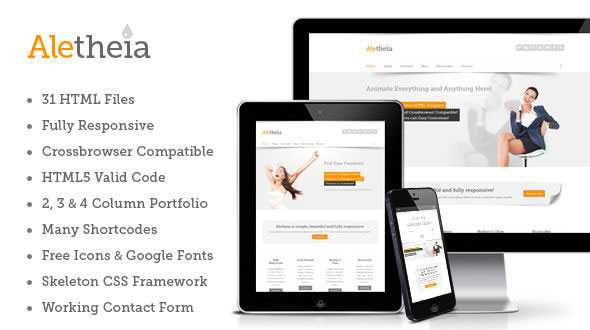 Aletheia is a Responsive HTML5 / CSS3 template. It is simple, clean and easy to customize. This template is suitable for Company, Business, Blog or Portfolio websites.