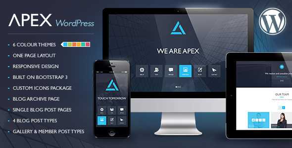 Apex Responsive WordPress Theme offers a unique intuitive interface, featuring the trendy one page layout design, and 6 built in colour themes. You can also easily customize colours and styling with numerous theme and page settings.