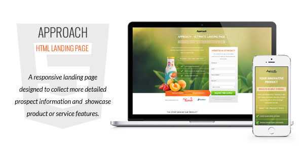 Approach is a responsive HTML lead gen landing page, designed to collect more detailed prospect information and showcase product or service features.
