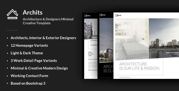 Archits is a minimal and modern creative portfolio template for architects, interior/exterior designers, furniture designers, photographers, developers or other creative persons and agencies. Archits is an attractive way how to promote your beautiful work.