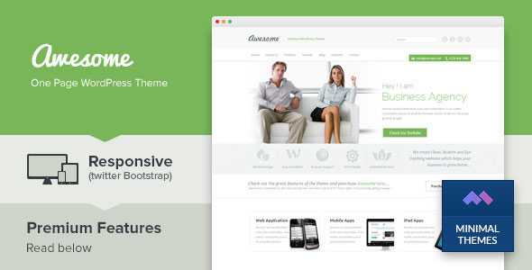 Awesome is a simple and clean one page business portfolio WordPress theme. It’s perfect for business agency which wants to show their services and portfolios to their customers. It focuses on displaying attractive front-page awesomely. So it’s easier to catch your customers’ attention.