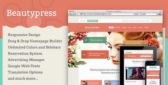 The Beautypress WordPress Theme is originally designed for beauty, healthcare, spa, therapy, massage salon websites, it can be easily adapted to any kind of website due to all the features theme has. Using a Home Page builder allows you to create unique homepage in just few clicks, simply add and drag-and-drop elements on desired position. The layout is responsive, looking great from a desktop view down to a smaller mobile resolution.