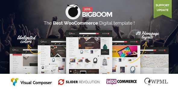 Bigboom is a professional and powerful WooCommerce Wordpress shopping theme for WordPress built with Bootstrap and powered by Visual Composer. The theme is suitable for any kind of shop raging from clothes to electronics, it’s main focus on mega stores and any big or small shopping sites.