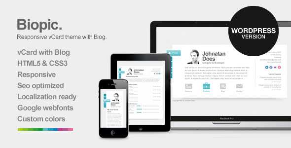 - Item name : Biopic - Responsive vCard WordPress Theme