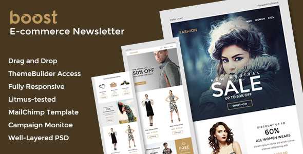 Boost Shopping Offers e-Commerce Newsletter is a high-quality designed e-commerce e-newsletter template with the coolest hipster and vintage style built for fashion, stores, blog, advertisement, Webshops and E-commerce, campaigns to promote your fashion shop or media during fastive season.