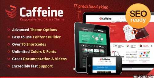 Caffeine theme is fully responsive and easy to use with Content Builder. This theme works properly on most available devices like smartphones or tablets. Creating pages with our incredible tool has never been so easy! We have also included really powerful Theme Options Panel. You have full control over the all available elements, sizes, fonts, colors, text, etc. This theme is shared on wplocker. We made especially for you tons of useful elements. You will love working with our product through this professional documentation.
