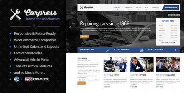 Carpress is a premium Wordpress Theme for mechanic workshops, car repairs, handymen or any similar local business website. It is very easy to setup and use.