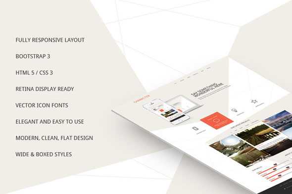 Fully Responsive Layout Bootstrap 3.3.1 HTML 5 / CSS 3 Retina Display Ready Vector Icon Fonts Elegant and Easy to Use Modern, Clean, Flat Design