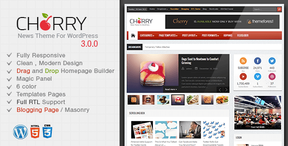 - Item name : Cherry - Themeforest Responsive News and Magazine Theme