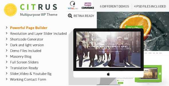 Citrus, a responsive one page parallax WordPress theme comes with powerful page builder. A truly multipurpose theme so you can build your personal website or easily turn it into a photographer, product promotion, web design agency, travel, night club, music, nonprofit, organization website.