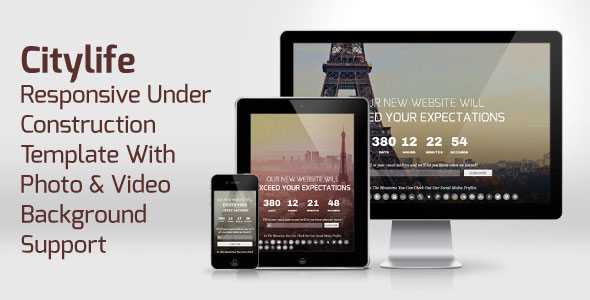 If you are searching something different and out of the line, please check out the CityLife – Responsive Under Construction Template. CityLife is a fully configurable and easy to use responsive under construction template with HTML5 Video Background Support and a lot of other great features. It has been specifically designed to be easily customized and it’s created for creatives who want to make under construction page in few minutes.