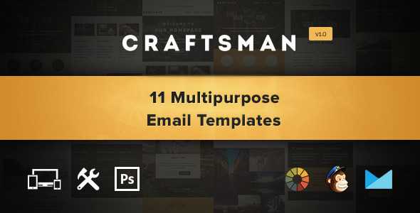 Craftsman – Multipurpose E-newsletter comes with: 5 Custom E-mail Templates 3 Eshot Templates 3 Notification Templates Free online template builder / editor access Responsive templates Multipurpose Use: Perfect for a wide range of business types MailChimp ready template Campaign Monitor ready template