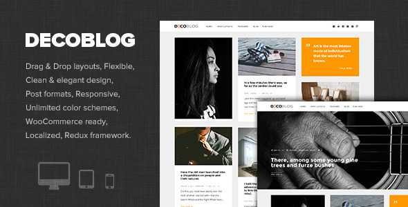 Decoblog is trendy, modern and easy-to-use blog WordPress theme with flexible and responsive layout. Theme is perfect for all blogging, lifestyle, design, art, styling, fashion, decoration, interior or personal websites and includes lots of features like Drag & Drop page builder, unique page builder blocks, support for WooCommerce etc.