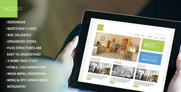 Decor HTML5 Responsive template has been brought you to give gorgeous and giant edition for your online businesses, activities and so many other things that you do using your sites. Decor is based on bootstrap 3, thus has been made fully responsive.