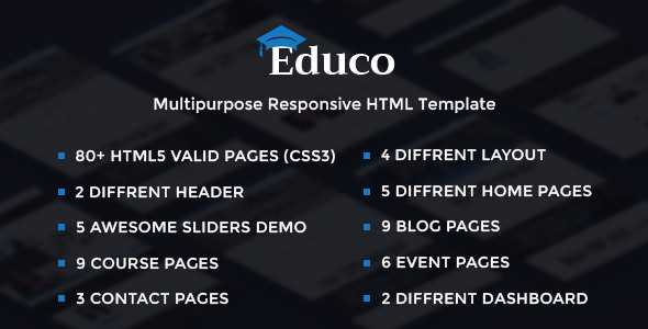 - Item name : Educo - Elearning, Education Bootstrap Html Template