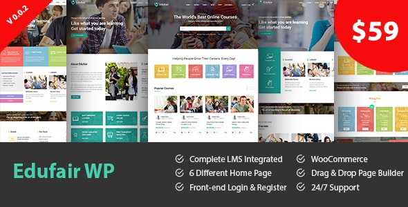 Edufair is a complete Learning Management System ( LMS ). Teachers can earn money by selling their course. Edufair has 6 complete demos for Online Course, University, High School and Kindergarten. It is perfect for any kind of Educational website. It is very easy to use.