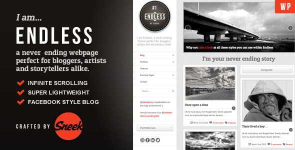 Endless is a clean and stylish infinite scrolling theme, perfect for bloggers and storytellers. We’ve delicately put together some awesome HTML5 mixed in some CSS3 and added a bit of jQuery on top to make this beautiful theme just for you.