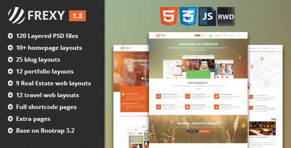 Frexy is a professional multipurpose, responsive, Bootstrap based HTML5 template for any business (creative, eCommerce, Education, Travel and Real Estate). It’s fully responsive design ready suitable to any device including retina.