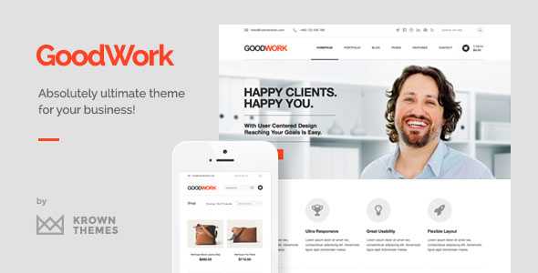 GoodWork is the absolutely ultimate theme for your business! It is an elegant & modern solution packed up with an incredibly great amount of high quality features. Shortcodes, sliders, layout builders, theme options, page templates, multilanguage support, responsiveness and retina ready, etc., are all in here!
