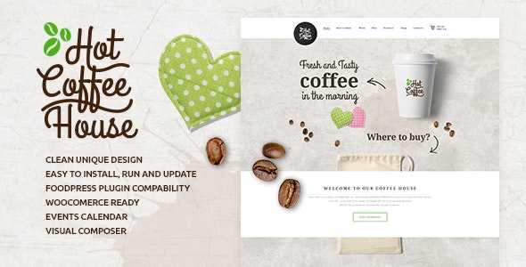 Hot Coffee is a beautiful fresh & clean Coffee House WordPress theme. It is made for an impressive online presentation of your coffee shop, cafe, bar, restaurant, tea house, bakery, etc.