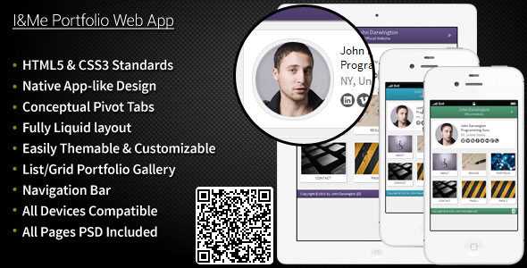 Built on pure HTML5 and CSS3, ‘I&Me Portfolio Web App’ is an ‘HTML5 valid’ personal mobile portfolio website consisting of all important pages.