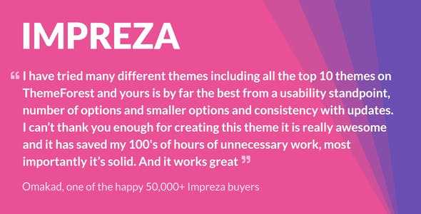 Impreza is a modern professional and flexible fully responsive retina-ready WordPress theme, developed with great attention to details. Theme can be used for any type of website: business, corporate, portfolio, products, marketing, etc.
